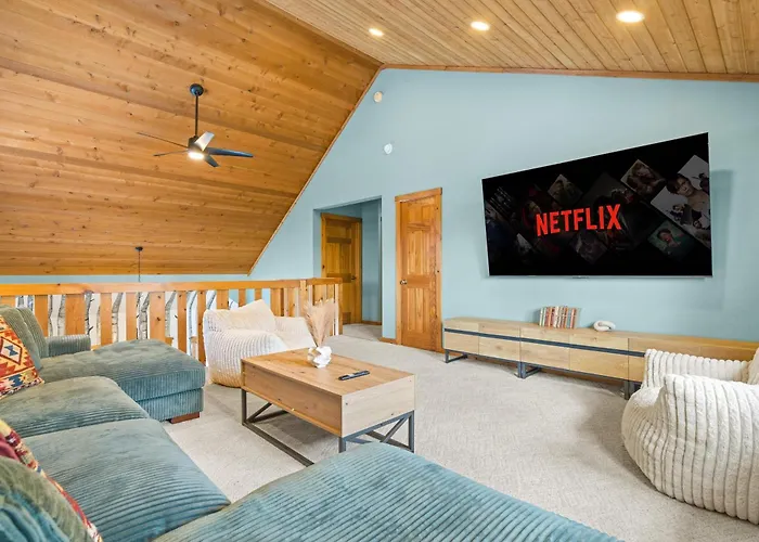 La Villa Luxury Meets Wilderness In The Heart Of The Poconos Albrightsville se encuentra a 4 km de la Montaña Big Boulder y ofrece una sauna. Situada a unos 10 minutos en coche de Split Rock Resort Indoor Waterpark, esta villa cuenta con un patio con vistas al lago.